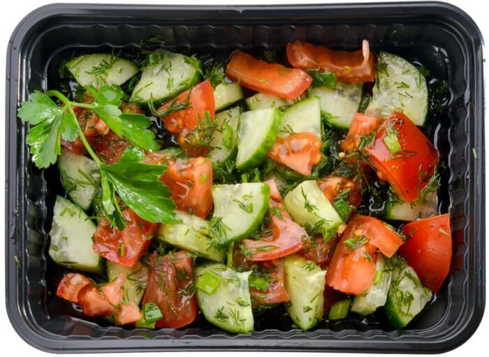 Салат с помидорами, огурецом и укропом)