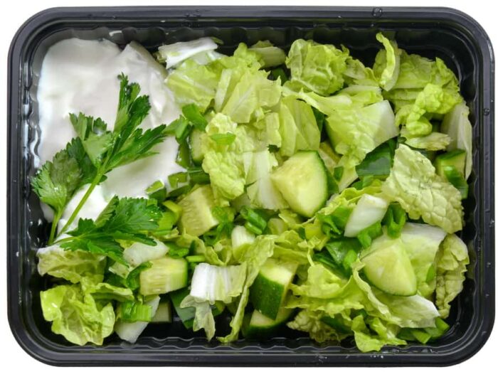 Салат из огурцов, салата, зелёного лука и сметаны)
