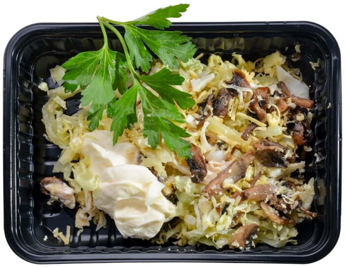 Салат с курицей, грибами,ананасом ,сыром, яйцом и майонезом
