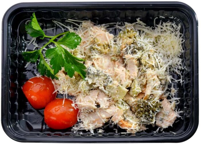 Салат с курицей запечённой, брокколи, томатами и сыром пармезан)