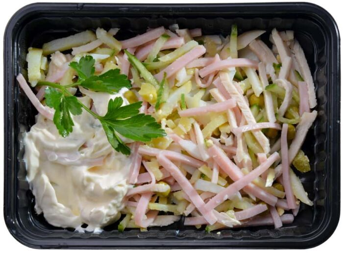 Салат «Русская красавица» с курицей и ветчиной